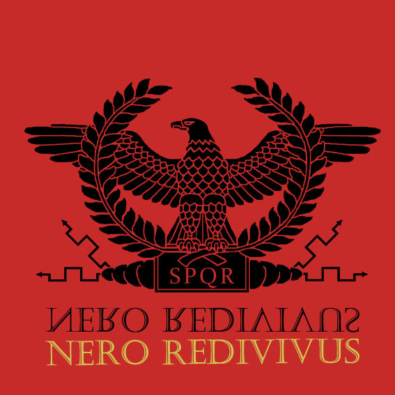 For the name 'Nero Redivivus', I had the idea to have it in gold while also having a mirror copy above it. Originally, we had the logo on a red background.
